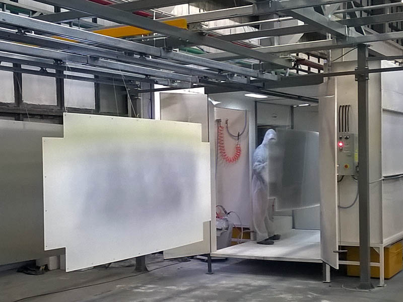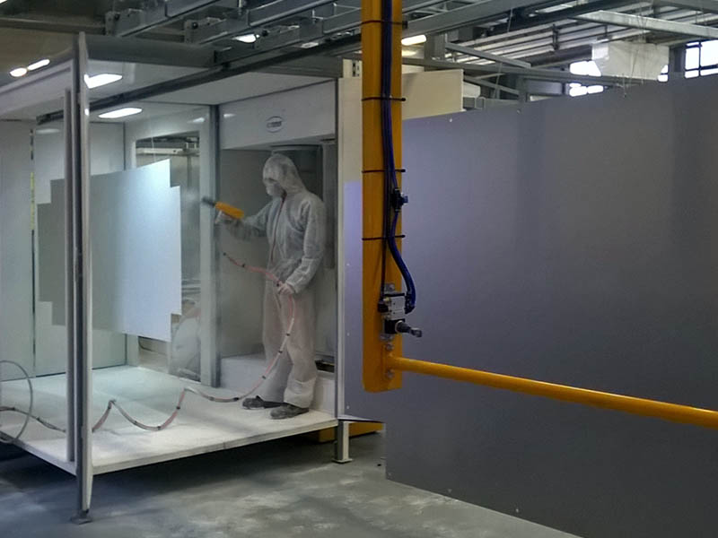 Wir verfügen über eine der modernsten Pulverbeschichtungsanlagen in der Region mit einer modernen Durchlaufkabine mit zwei Stationen und einem oberen Transportsystem sowie einem großen Ofen mit den Abmessungen: 2.000 B x 2.300 H x 5.000 T.