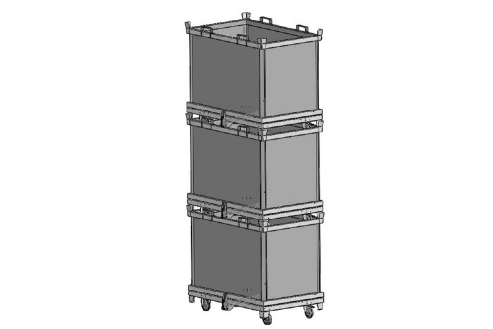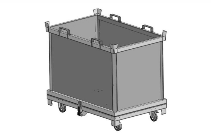 Pojemniki metalowe z możliwością piętrowania. Przeznaczone do transportowania i magazynowania materiałów stałych.