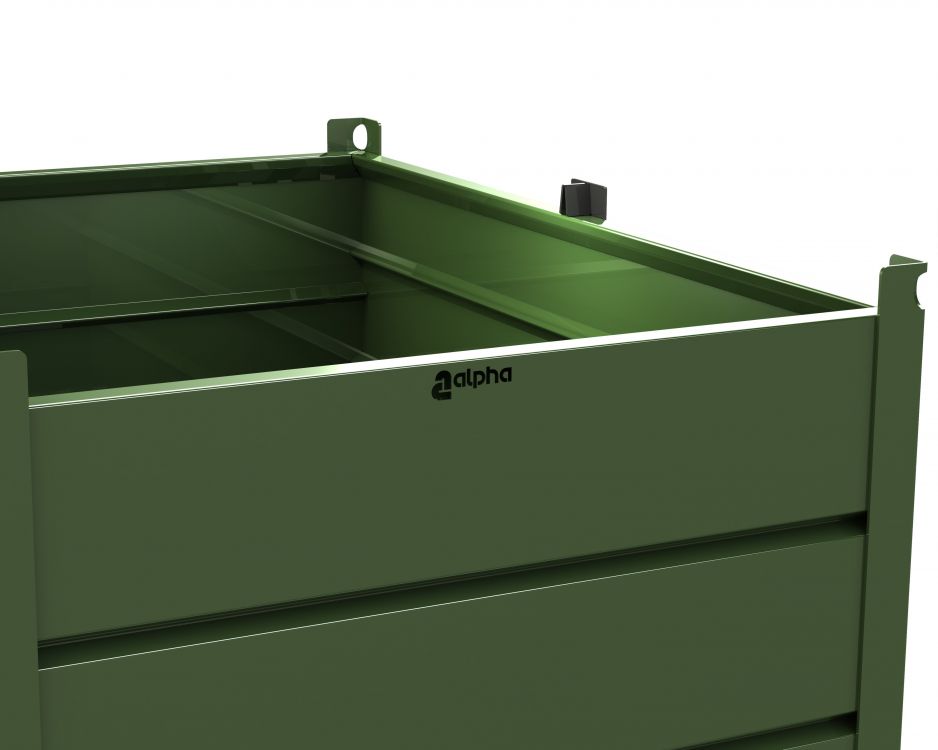 Każdy pojemnik jest wyposażony w gwintowane otwory w ścianie bocznej konstrukcji. W razie potrzeby można w łatwy sposób zamocować za pomocą śrub separator, który zapewni stabilne i bezpieczne składowanie pojemników.