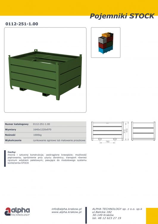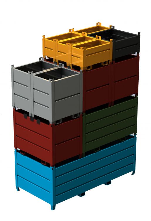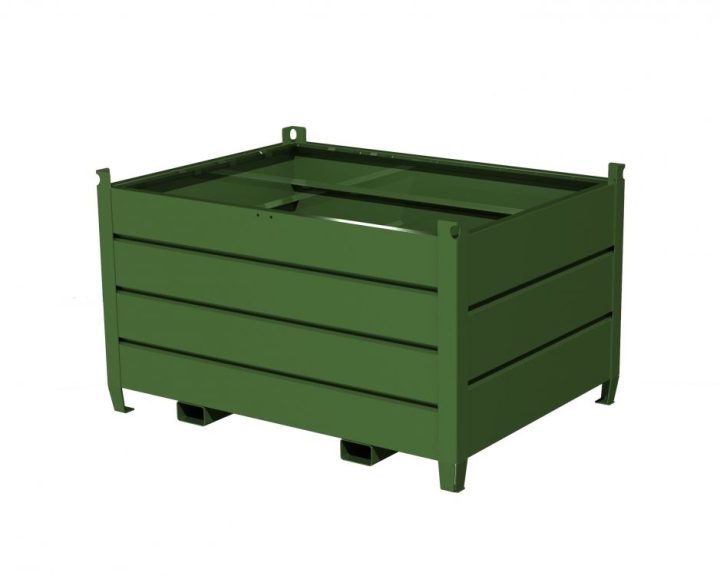 Nasze pojemniki metalowe charakteryzują się stabilną konstrukcją, dzięki zastosowaniu kątownika stalowego w narożach. Zarówno ściany jak i podłoga wykonane są z wzmocnionej szpanerem środkowym blachy stalowej. Zapewnia to wysoką stabilność i wytrzymałość nawet przy największych obciążeniach. Stosowane do magazynowania stacjonarnego odpadów poprodukcyjnych a następnie transportu wózkiem widłowym do miejsca składowania
