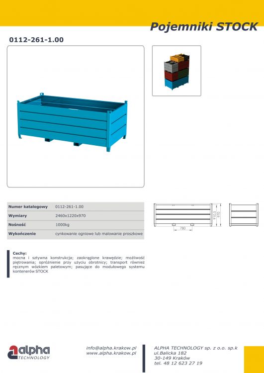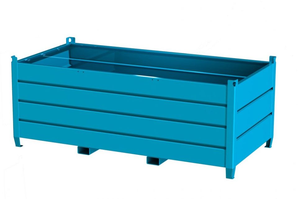 Nasze pojemniki metalowe charakteryzują się stabilną konstrukcją, dzięki zastosowaniu kątownika stalowego w narożach. Zarówno ściany jak i podłoga wykonane są z wzmocnionej szpanerem środkowym blachy stalowej. Zapewnia to wysoką stabilność i wytrzymałość nawet przy największych obciążeniach. Stosowane do magazynowania stacjonarnego odpadów poprodukcyjnych a następnie transportu wózkiem widłowym do miejsca składowania