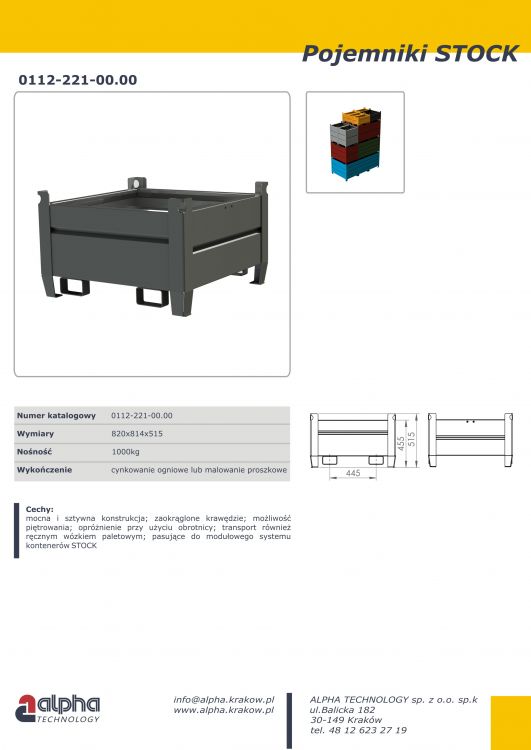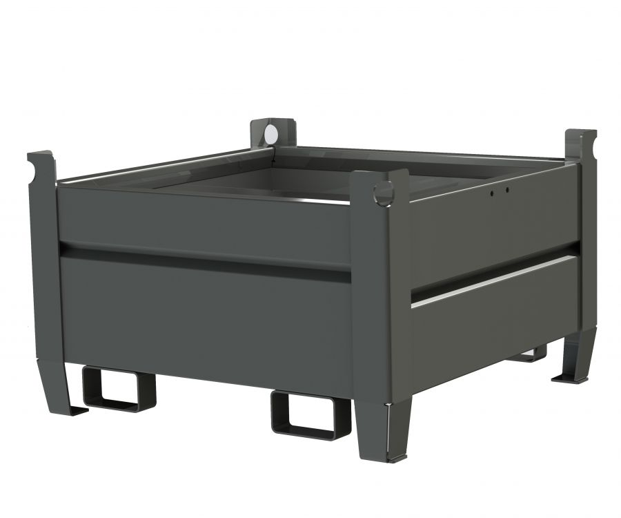 Nasze pojemniki metalowe charakteryzują się stabilną konstrukcją, dzięki zastosowaniu kątownika stalowego w narożach. Zarówno ściany jak i podłoga wykonane są z wzmocnionej szpanerem środkowym blachy stalowej. Zapewnia to wysoką stabilność i wytrzymałość nawet przy największych obciążeniach. Stosowane do magazynowania stacjonarnego odpadów poprodukcyjnych a następnie transportu wózkiem widłowym do miejsca składowania