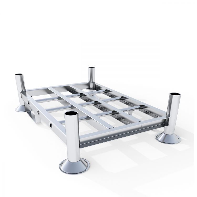 Palety słupkowe mają podwójne przeznaczenie: mogą być stosowane jako palety transportowe, a po zamontowaniu 4 rur można z nich budować regały magazynowe, bez konieczności przeładowania znajdującego się na nich towaru.