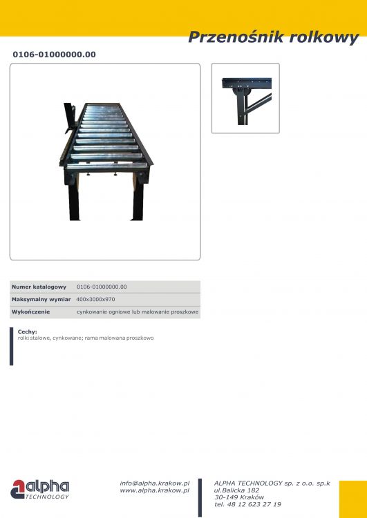 Rolki stalowe, cynkowane. Rama lakierowana proszkowo.